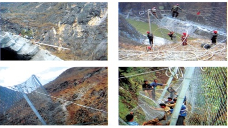 系統(tǒng)的柔性和攔截強(qiáng)度足以吸收和分散傳遞預(yù)計(jì)的落石沖擊動(dòng)能,消能環(huán)的設(shè)計(jì)和采用使系統(tǒng)的抗沖擊能力得到進(jìn)一步提高.與剛性攔截和砌漿擋墻相比較,改變了原有施工工藝,使工期和資金得到減少